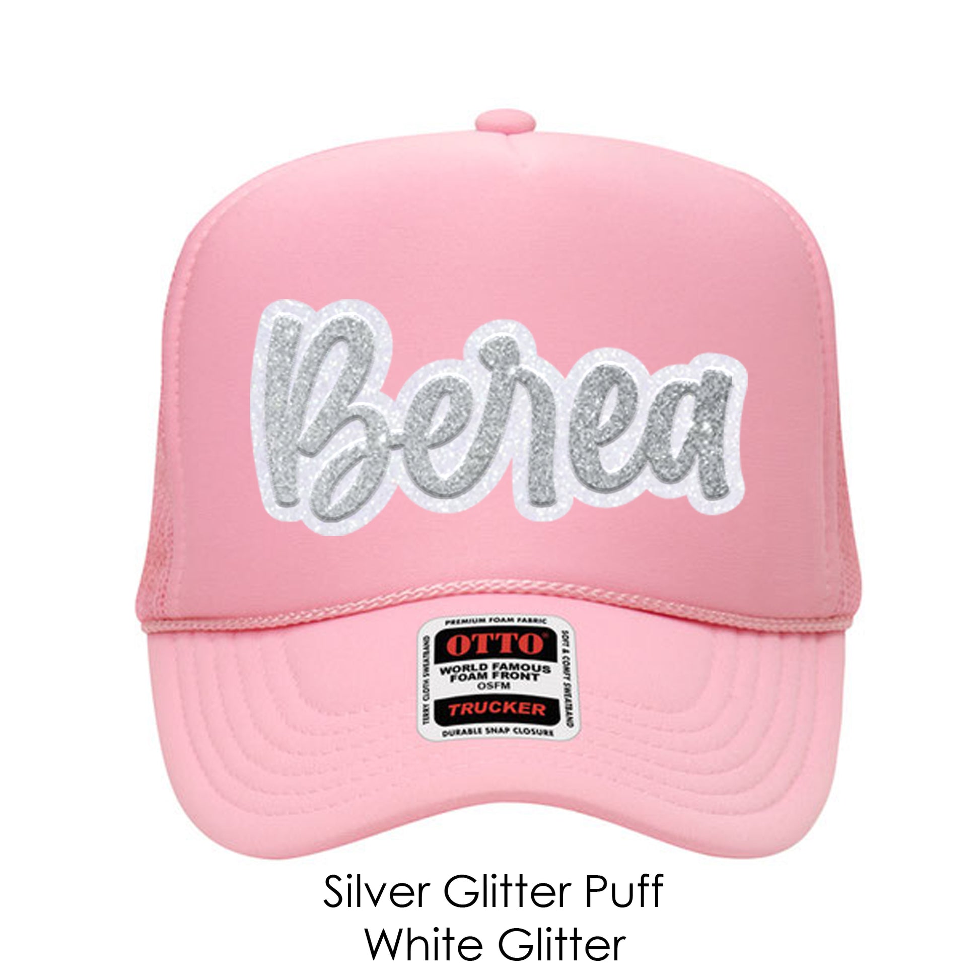 Berea Light Pink Hat Silver Glitter Puff and White Glitter